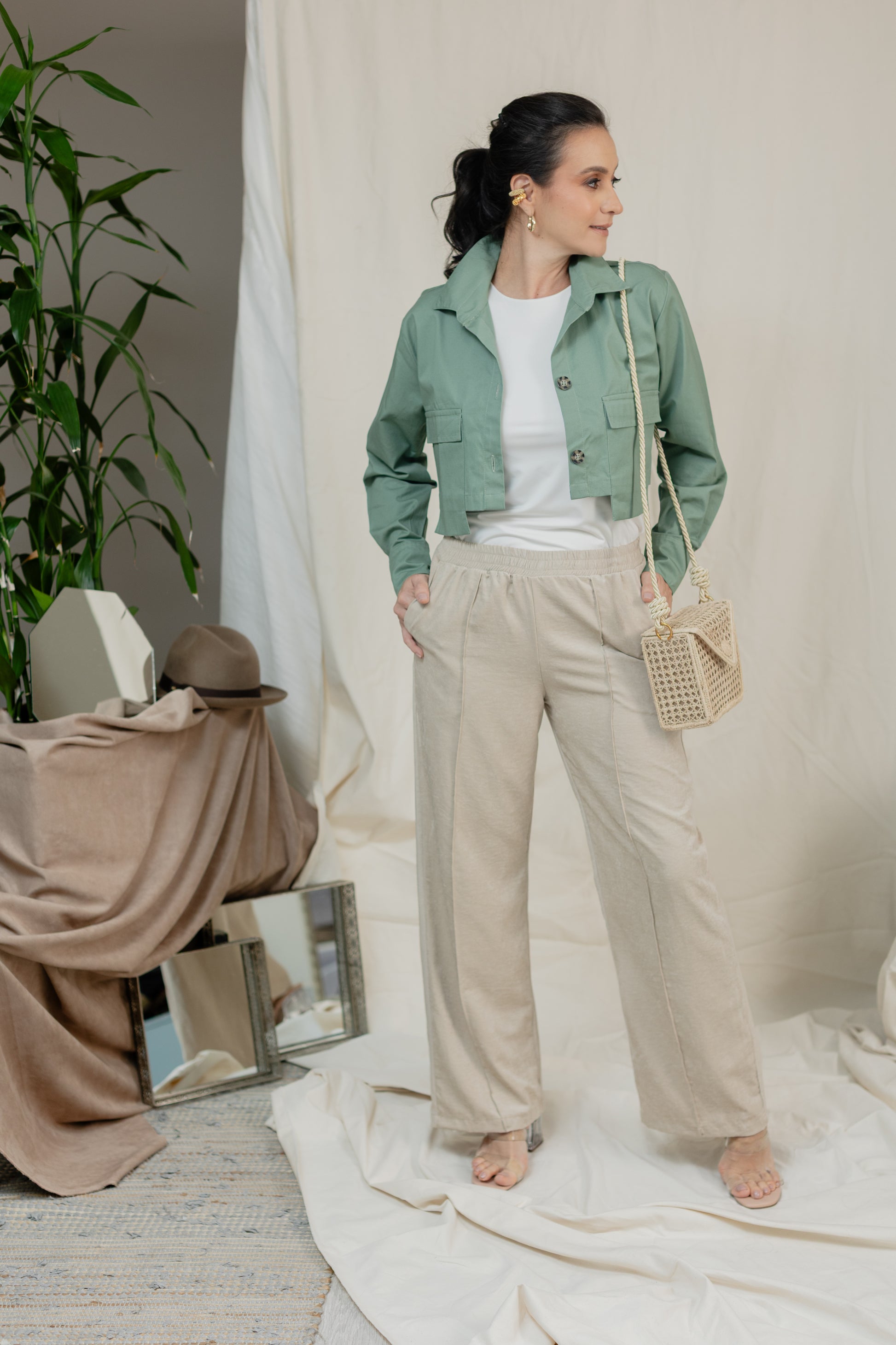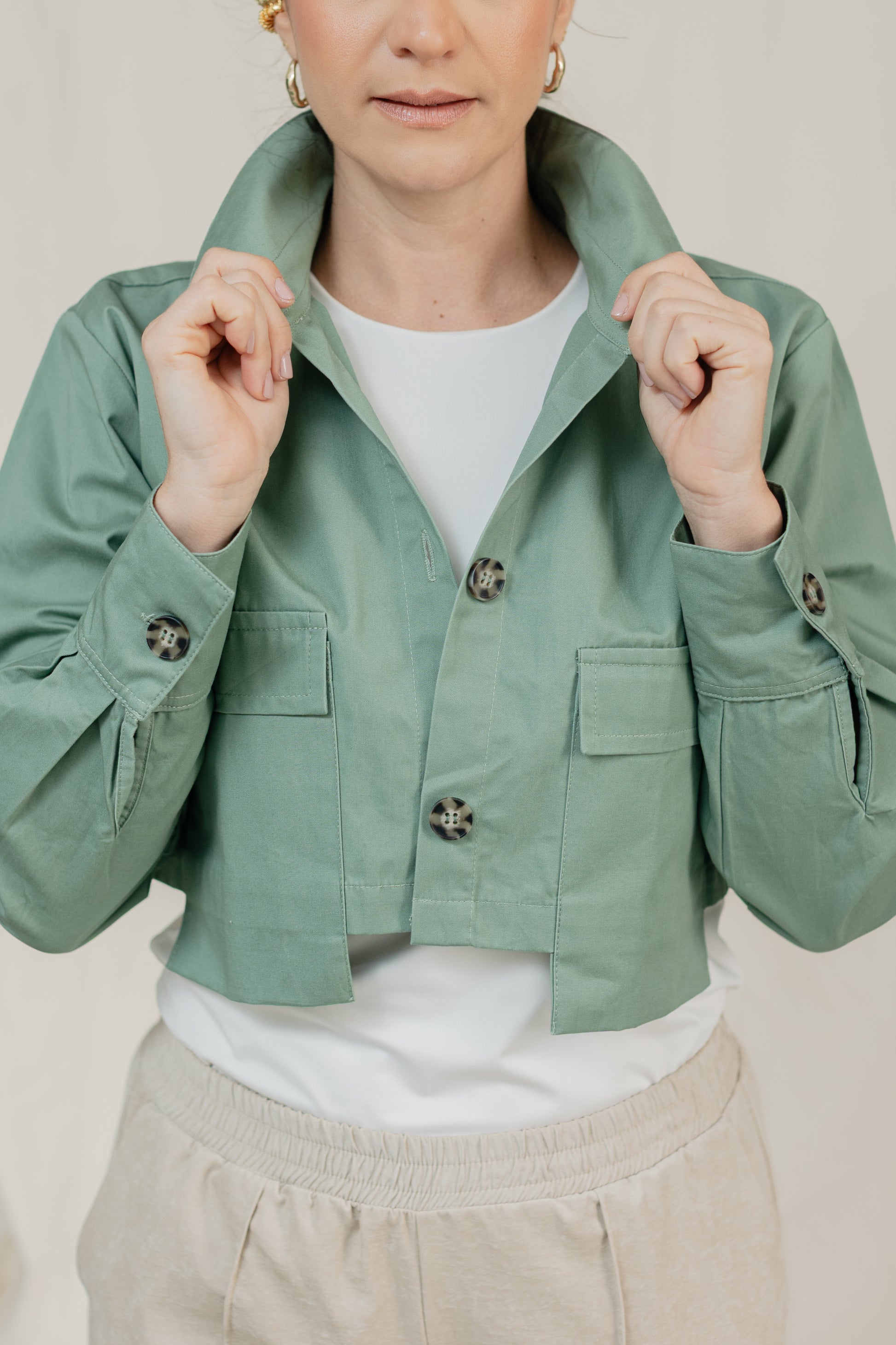 Mini jacket en base drill algodón 100% con acabado soft. Una chaqueta tipo torera que te quedará perfecta muchos looks. Sus botones metálicos le dan una apariencia trendy, al igual que sus bolsillos.