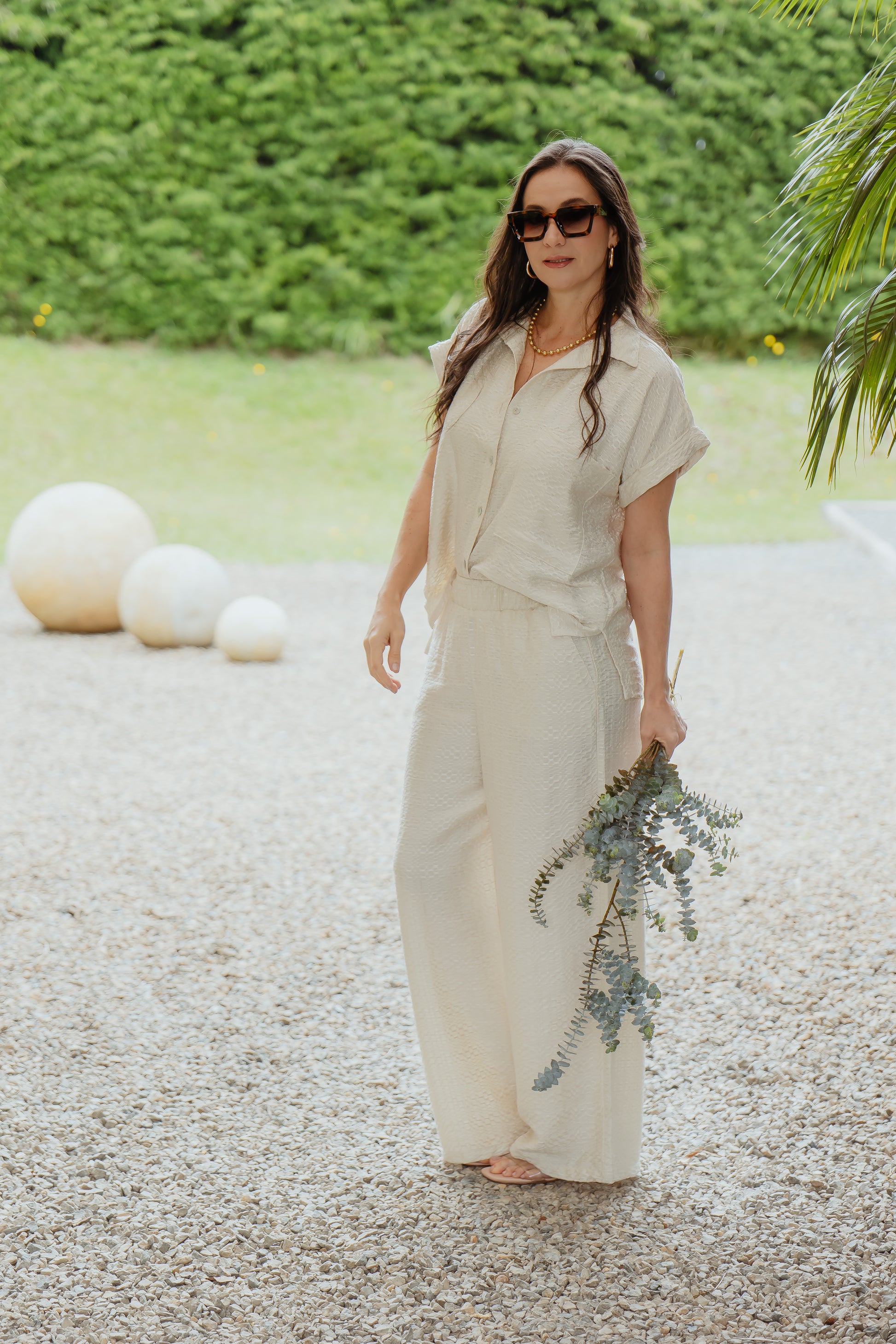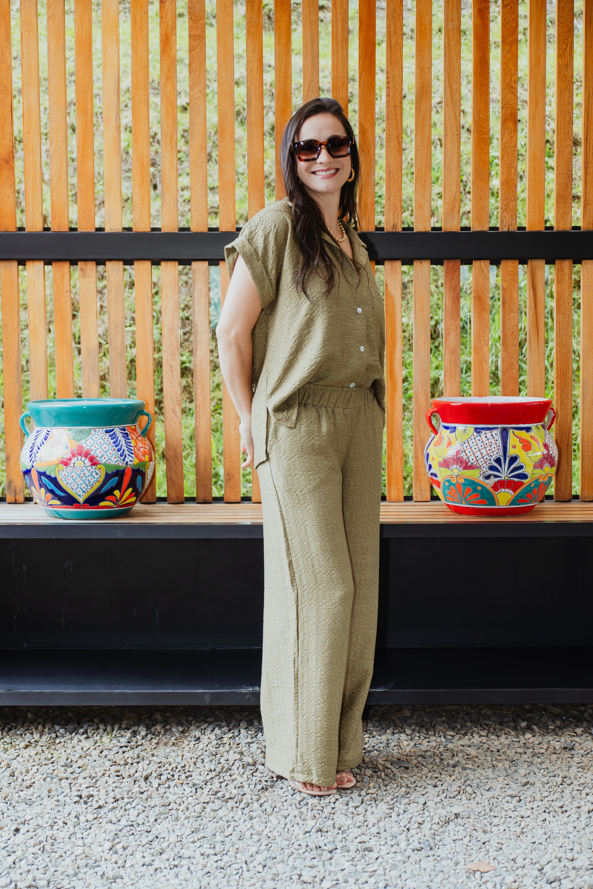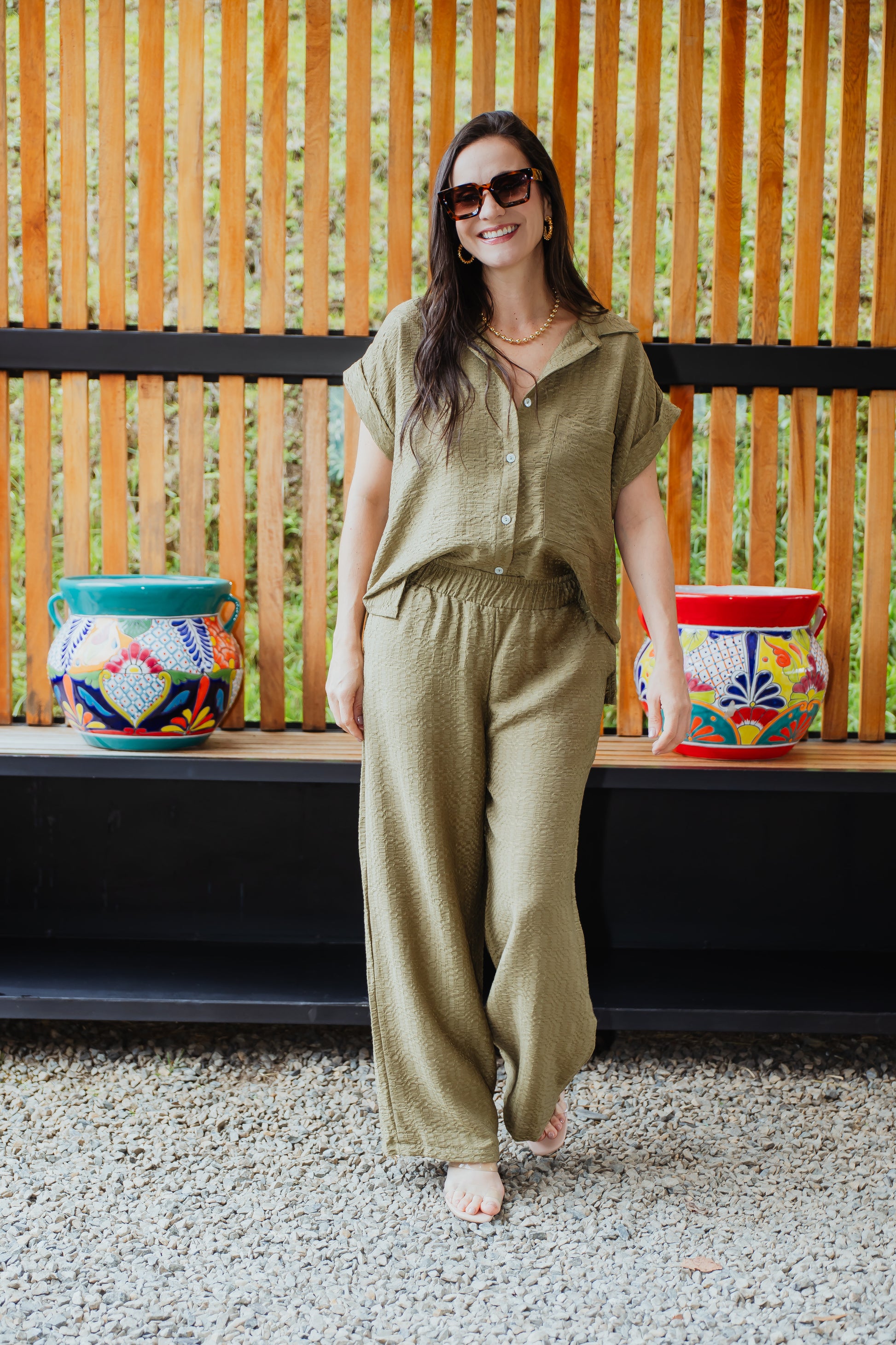 Set elaborado en rayon suave, manga doblada botones delanteros cuello elegante, pantalon de resorte estilo palazzo disponible en 4 tonos, el complemento perfecto para tus looks cada dia, versatil y elegante